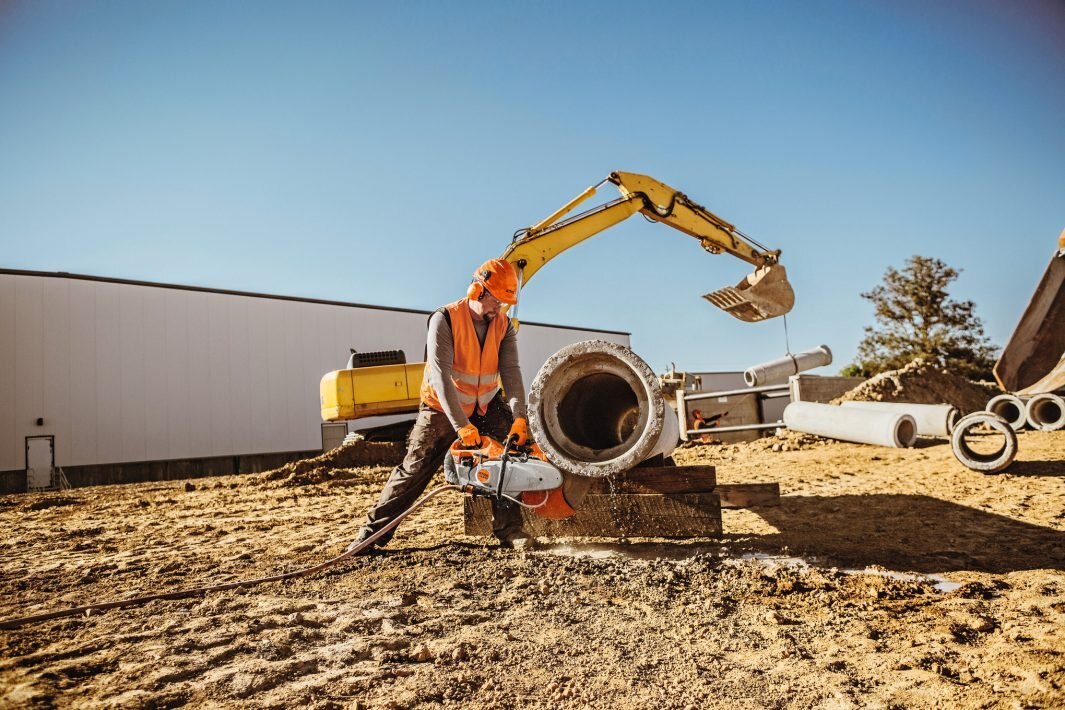 With the STIHL TS 440 gas cut-off machine, you are ideally equipped for professional applications in the areas of construction and civil engineering. Whether you need to cut concrete, stone, asphalt, structural steel or pipes, the STIHL TS 440 cut-off machine, equipped with a 350 mm cutting wheel such as the STIHL D-SB 80 diamond cutting wheel, will complete all of these tasks reliably. Thanks to the extended guard adjustment, the tool can be used efficiently in tight spaces when cutting pipes, corners and walls. If there is a strong kickback, the STIHL QuickStop cutting wheel brake stops the cutting wheel in a fraction of a second.