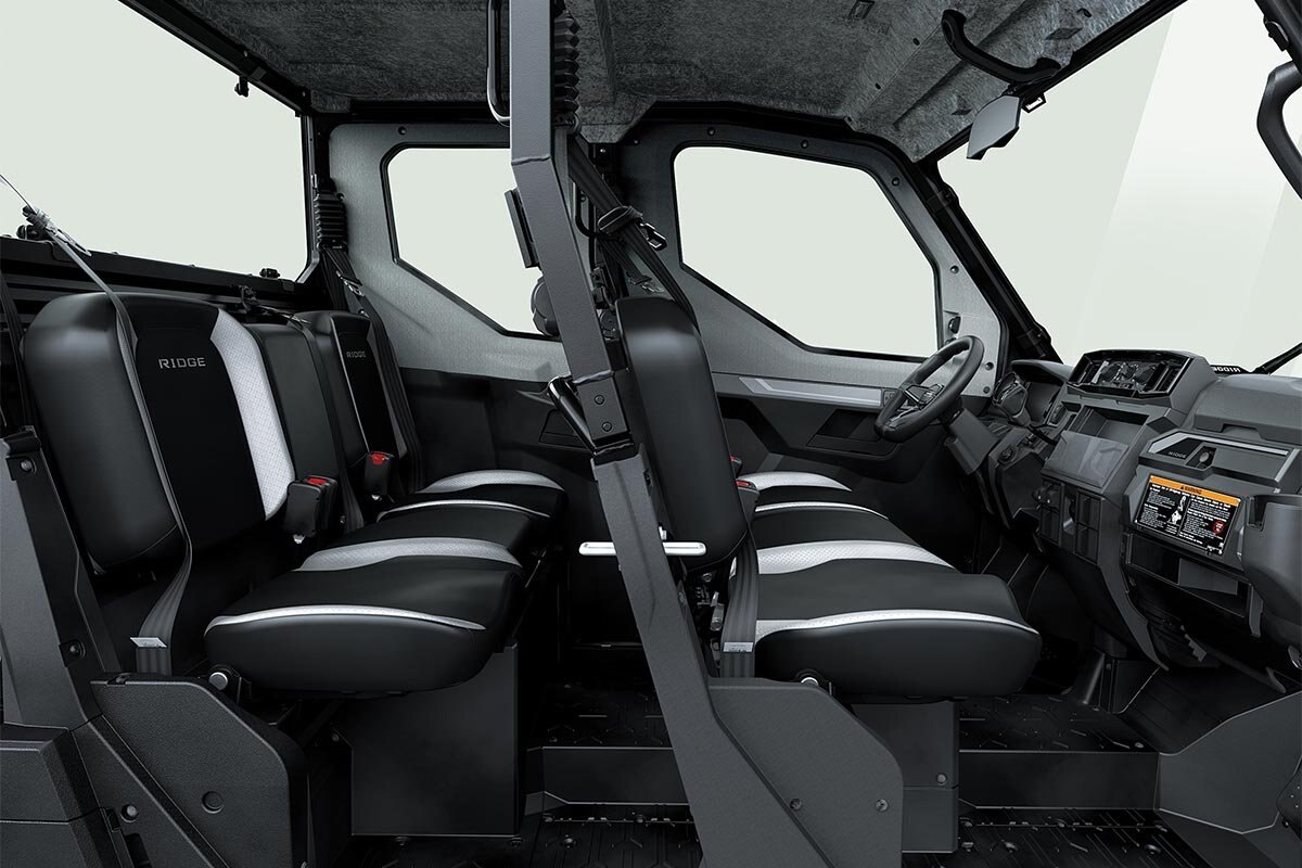 Revolutionize off-roading—and bring everyone. The all-new RIDGE CREW HVAC side x side features seating for six and groundbreaking 4-cylinder power that transforms every ride to an unforgettable group experience. Work or play, a sealed cab with heating, ventilation, and air conditioning (HVAC) provides a comfortable escape all year round. With the RIDGE CREW HVAC, no one gets left behind.