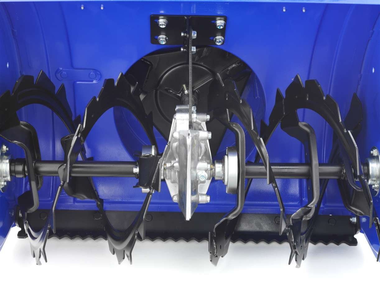 Dual-stage 615 mm (24") auger utilizes a heavy duty serrated steel "blade" to chew through hard packed snow and ice without breaking a sweat. The clearing height is 440 mm (17"). The high speed impeller located in the resin lined chute fires snow up to 15 meters (49 ft.). The YT624EJ can move up to 35 tons of snow per hour.